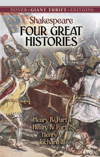 Part I, through spectacular battles and tender love scenes in Henry IV, Part II, and concluding with his reign as the ideal monarch in Henry V, Shakespeare masterfully combines comedy and actual events from 15th-century England in these 3 outstanding plays. Also includes the ever-villainous Richard III.